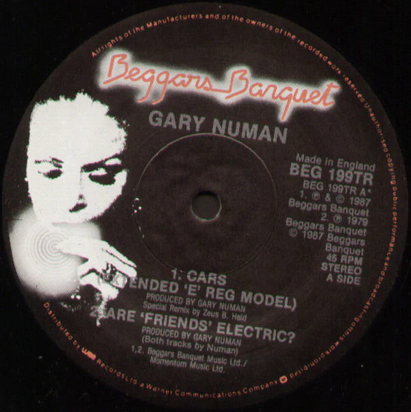 Gary Numan - Cars (E-Reg Model) (12", Single) (NM or M- / VG+)